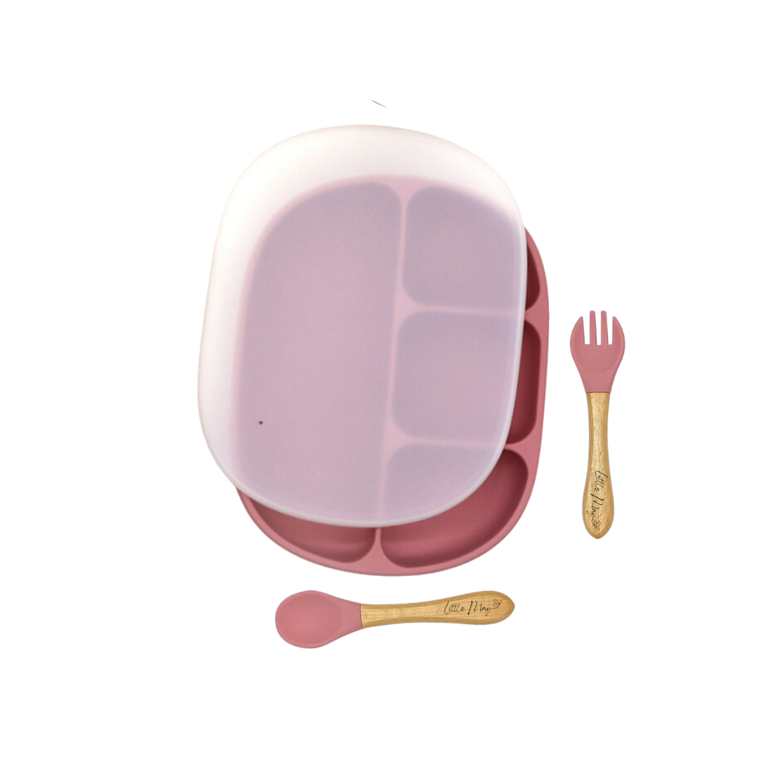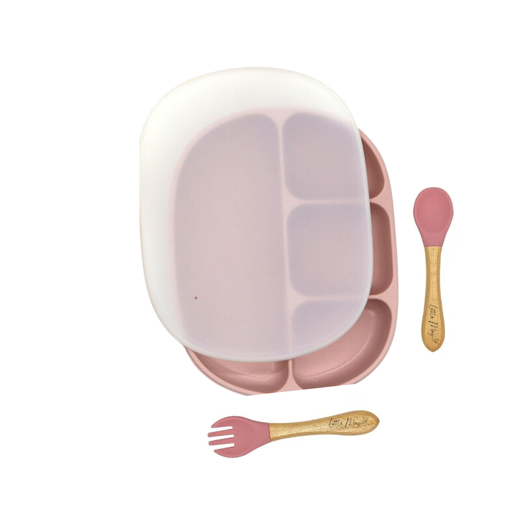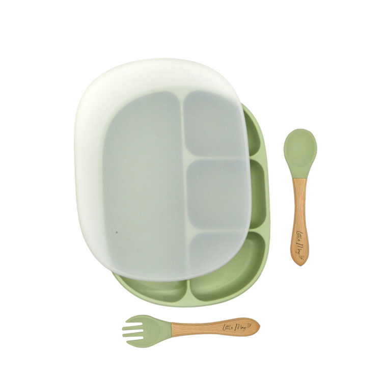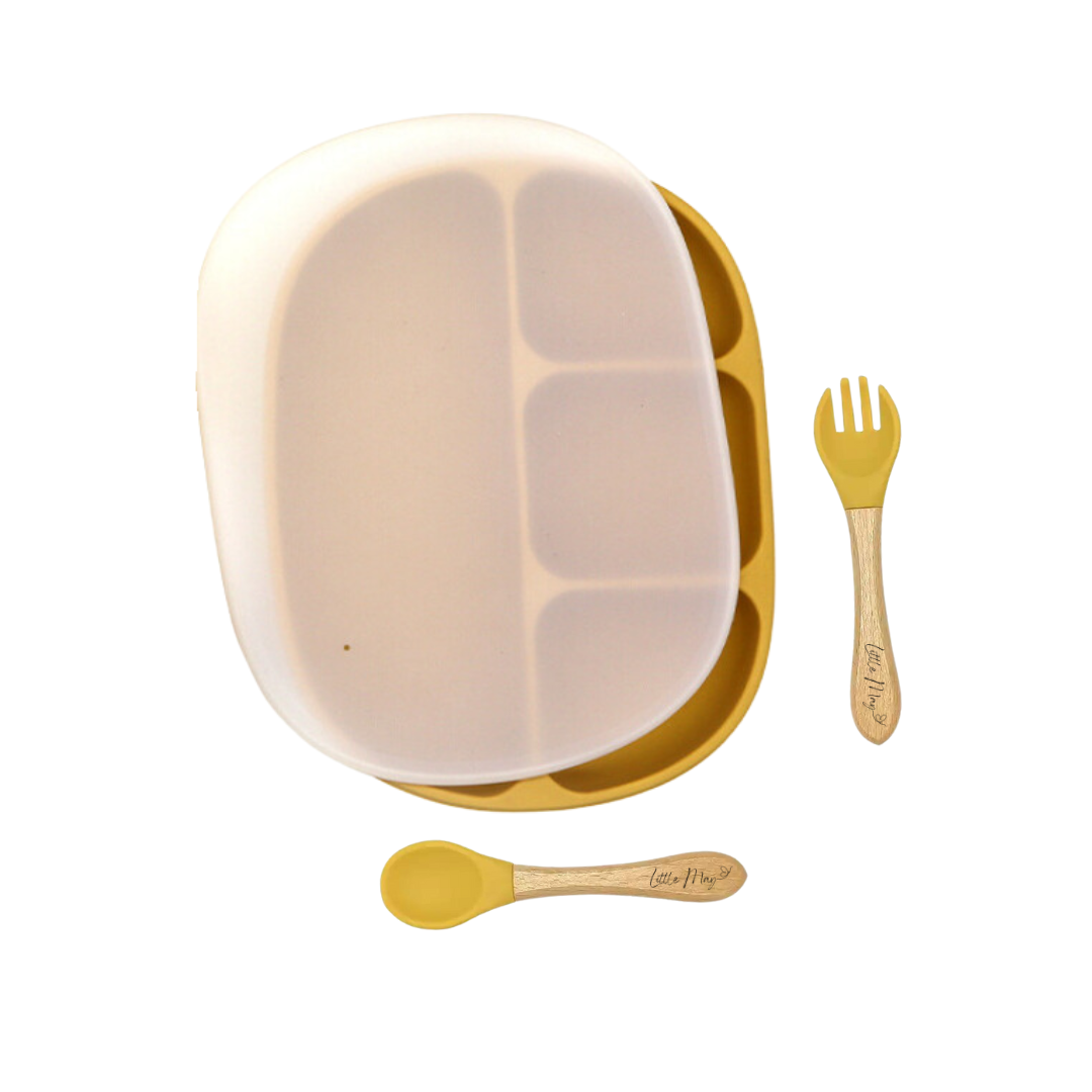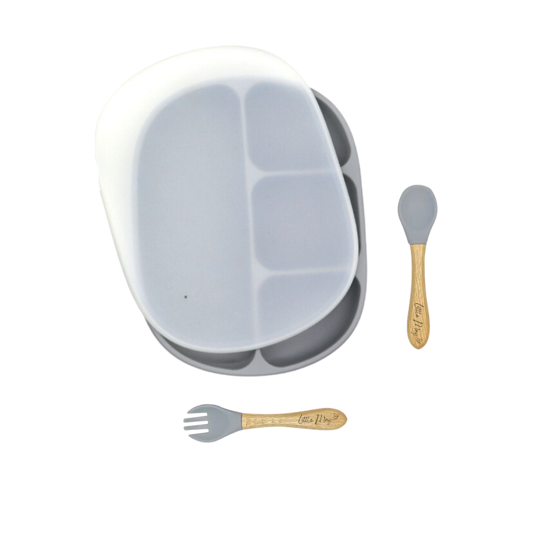 This combo includes a divided plate with an accompanying lid, a spoon, and a fork – all designed with both safety and convenience in mind. Crafted from food-safe silicone, you can rest easy knowing that your child's meals are served in a healthy and hygienic manner. Plus, they're dishwasher safe, making cleanup a breeze for busy parents.