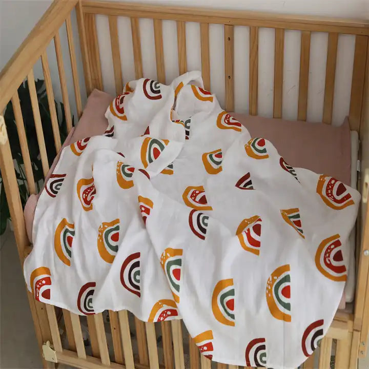 Experience the sheer delight of The Boho Rainbow Swaddle, designed with your baby's comfort in mind. Made from a blend of bamboo and cotton, it's the epitome of softness and breathability, perfect for your little one's delicate skin. This versatile swaddle isn't just for swaddling; it can be used as a cozy blanket, nursing cover, stroller shade, and more. Lightweight, hypoallergenic, and oh-so stylish, it's an invaluable addition to your baby's daily routine.