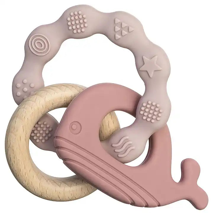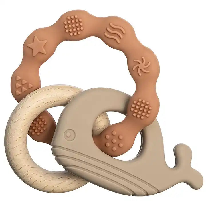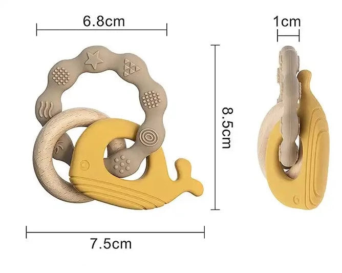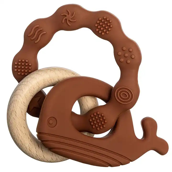 Dive into a world of chewable delights with this quirky, food-grade silicone teether that's not only safe but also dishwasher-friendly. Yes, even whales need a good rinse now and then!